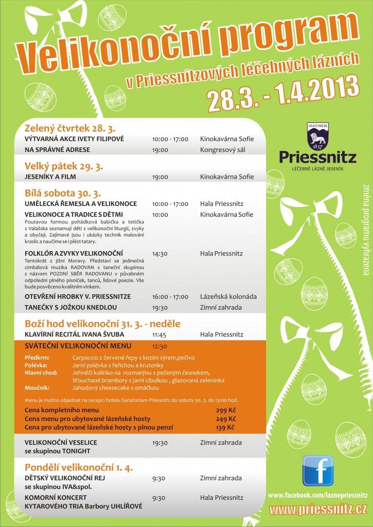 Menu je možno objednat na recepci hotelu Sanatorium Priessnitz do soboty 30. 3. do 13:00 hod.