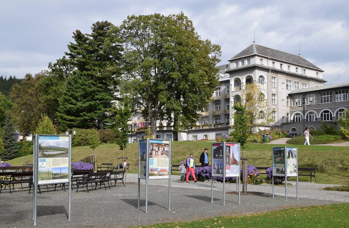 HOSTÍME PUTOVNÍ VÝSTAVU Z VYŠEHRADUPřímo před hudebním altánkem na Ripperově promenádě je k vidění část putovní výstavy Má vlast cestami proměn, která se snaží prezentovat vydařené proměny chátrajících staveb v důstojné objekty s užitečnou náplní. Mezi prezentovanými jsou také rekonstrukce z Jesenicka. Výstava se už po osmé snaží nejširší veřejnosti představit opravené historické a sakrální stavby, zkrášlená náměstí, návsi i revitalizované parky z celé České republiky. Každoročně je zahajována v květnu na pražském Vyšehradě, následujících jedenáct měsíců putuje po celé zemi. Letos mají možnost zhlédnout její část i návštěvníci našich lázní. „Až do konce října si hosté lázní při procházce po promenádě mohou prohlédnout jednadvacet proměn z Olomouckého a Moravskoslezského kraje. Mezi nimi najdou i ty z Jesenicka: kromě obnovy lázeňské kavárny i rekonstrukci penzionu ve Staré Červené Vodě,“ představuje jesenickou výstavu obchodní ředitel Tomáš Rak. Výstavu ve spolupráci s jedenácti krajskými úřady pořádají Asociace Entente Florale CZ - Souznění, z.s. a Národní kulturní památka Vyšehrad. Více se o výstavě můžete dozvědět na http://cestamipromen.cz. | |