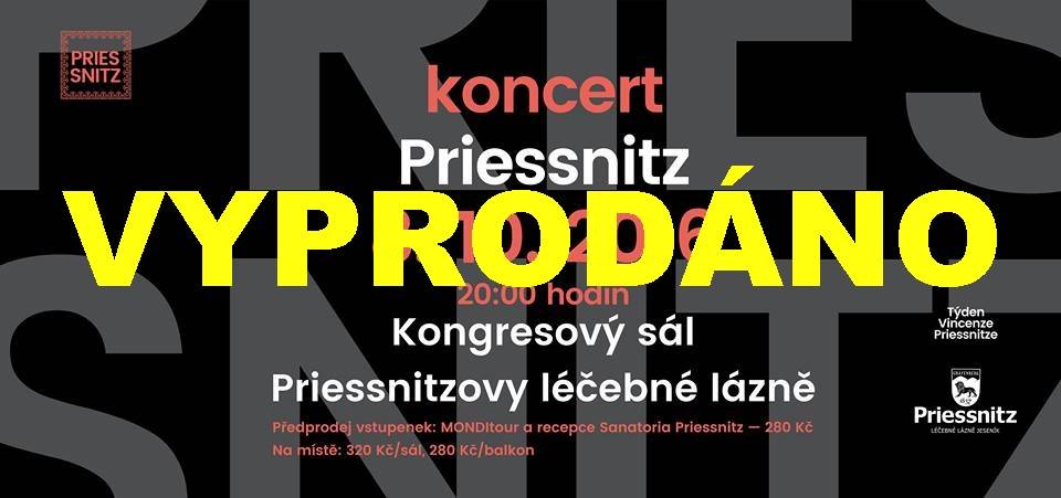 SOBOTNÍ KONCERT JE VYPRODANÝSobotní koncert kapely Priessnitz je vyprodaný. Lístky přímo na místě v prodeji nejsou!