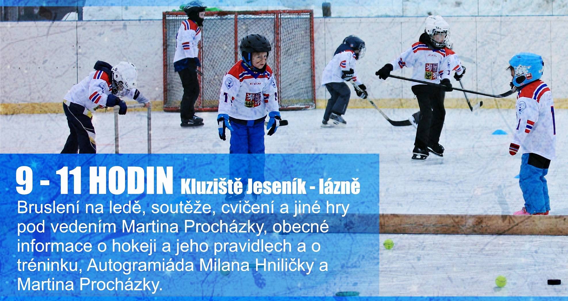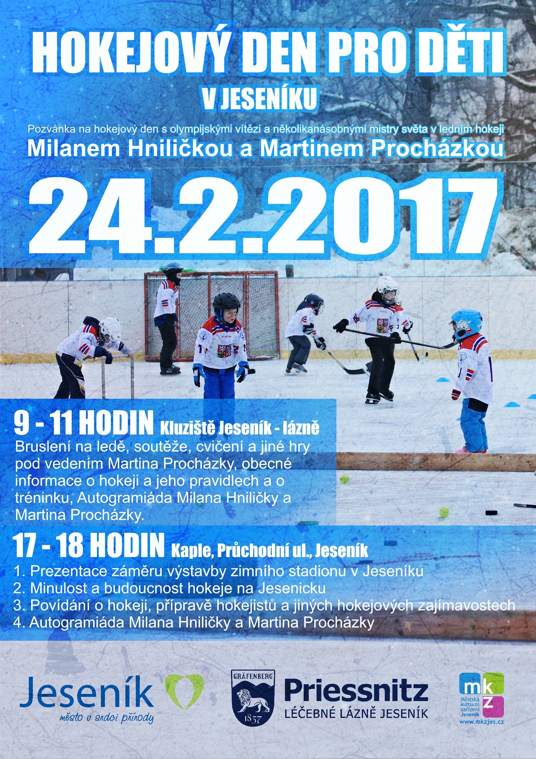 PŘIJEDOU K NÁM OLYMPIJŠTÍ VÍTĚZOVÉLázeňské kluziště se chystá na výjimečnou akci. Na jeho ledě se totiž v pátek 24. března objeví hokejoví olympionici z Nagana Milan Hnilička a Martin Procházka. Dopoledne si je malí i velcí mohou užít na ledě, odpoledne pak budou v prostorách městské Kaple diskutovat o budoucnosti hokeje v Jeseníku. Více se dozvíte na přiloženém letáku. | |