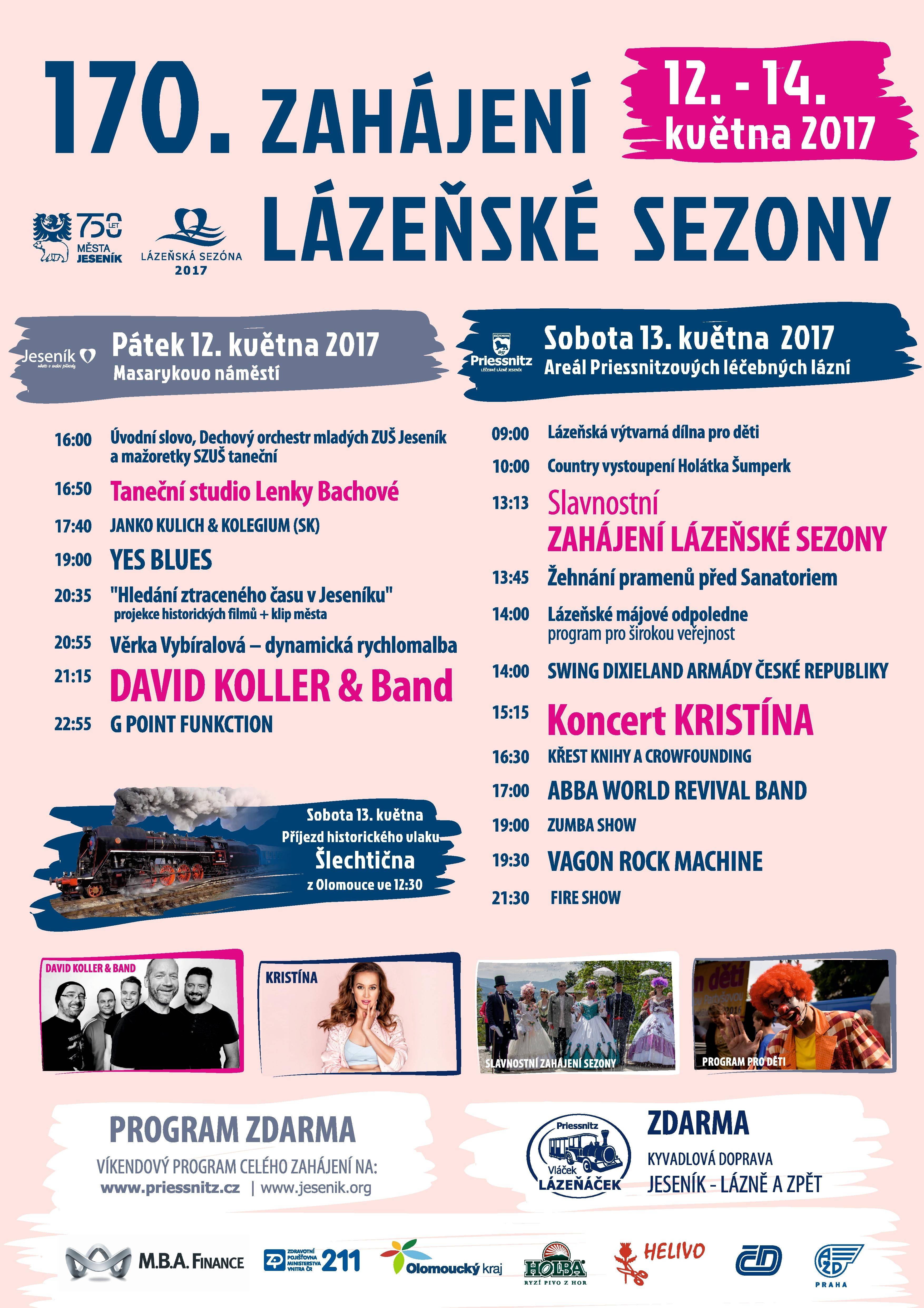 ZAHÁJENÍ LÁZEŇSKÉ SEZONY SE BLÍŽÍLetošní jubilejní 170. zahájení lázeňské sezony na Gräfenberku se blíží, proběhne 12. až 14. května. Hlavním slavnostním dnem bude zase sobota. Do Jeseníku můžete přicestovat věru nostalgicky, parním vlakem Šlechtična. Potkáte v něm i samotného Vincenze s chotí Sofií, které s gräfenberským panstvem budete v lázních potkávat po celý den. Těšit se můžete i na Vláček Lázeňáček, koncert Slovenky Kristíny, žehnání pramenů, dětský program, křest zajímavé knihy a mnoho dalšího, program pro vás máme od pátku do neděle! Podorbný program všech slavnostních dní najdete zde. | |