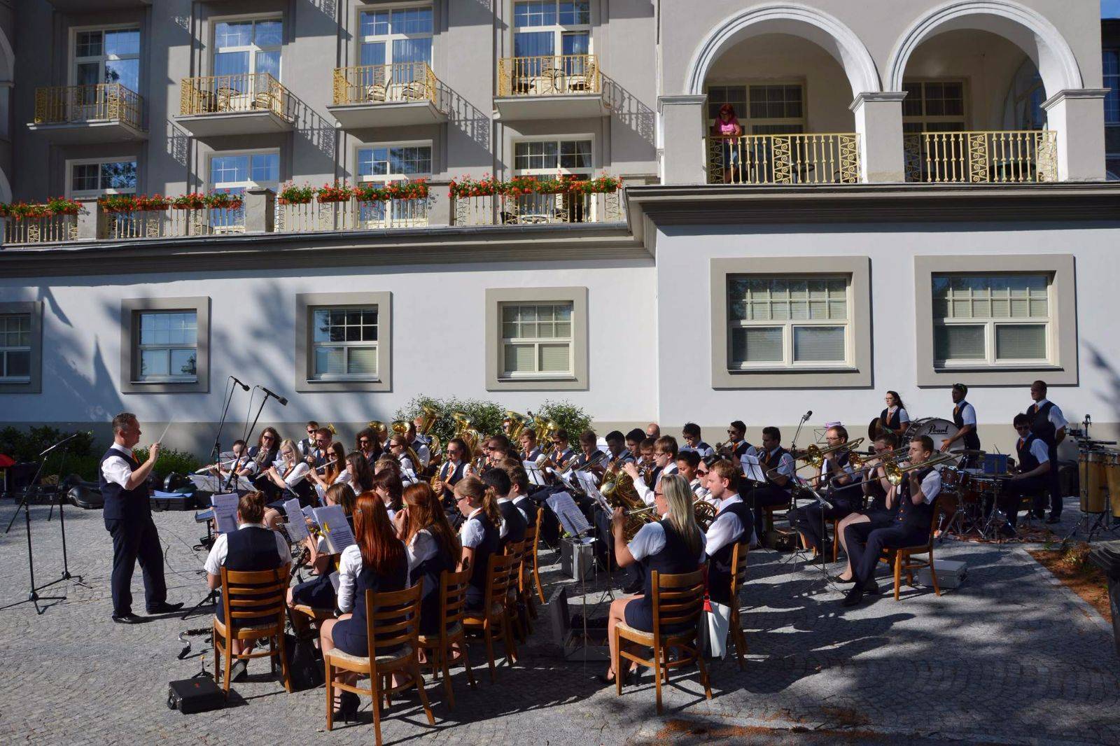 Víkend věnovaný dechové hudbě!Nádherný víkend zažili hosté našich lázní v doprovodu dechových kapel z celého světa. 14. ročník mezinárodního dechového festivalu představil 10 kapel v rámci dvoudenního programu před Sanatoriem Priessnitz. Přinášíme Vám ochutnávku víkendové atmosféry, která u nás vládla. Fotografie