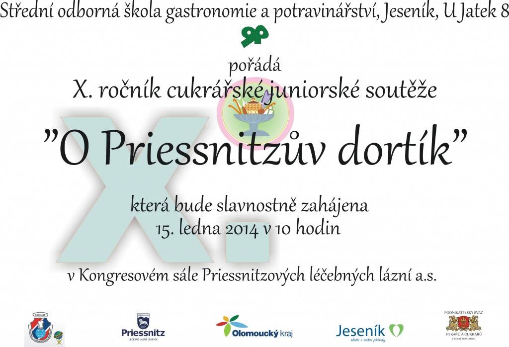 O Priessnitzův dortík15. ledna 2014 Už desátým rokem se sejdou juniorští cukráři v Kongresovém sále Priessnitzových léčebných lázní, aby porovnali své dovednosti v tomto bílém řemesle. Z deseti převážně moravských gastronomických škol přivezou své dvoukilové dorty, aby je mohli posoudit jak diváci tak především odborná porota. Před jejíma kritickýma očima pak soutěžící budou v časovém limitu zdobit perník a modelovat čokoládovou mašli. | |