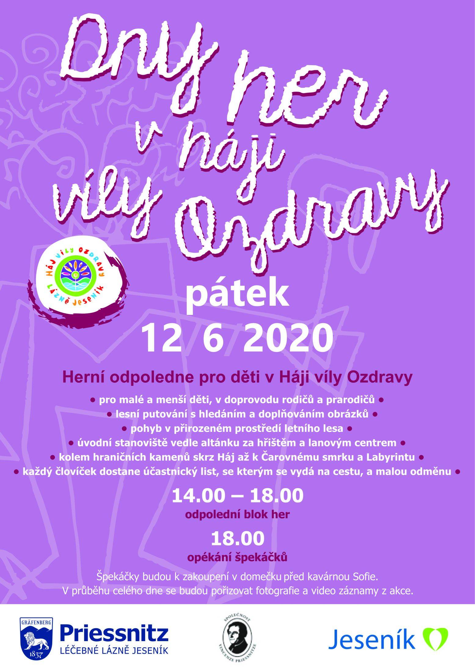 V pátek 12. 6. se uskutečnil letošní první Den v Háji víly OzdravyLetošní první Den v Háji víly Ozdravy provázelo pěkné počasí. Stezky byly místy blátivé, ale pro děti tohle rozhodně nebyla žádná překážka. Start začínal na hřišti v altánku za sanatoriem Priessnitz, kde děti dostaly hrací list, se kterým se mohly vydat na poznávací cestu hájem. Celkem bylo v prostoru „Háje Víly Ozdravy“ rozmístěno 6 stanovišť, kde malí návštěvníci měli za úkol rozpoznat jednotlivé obrázky. Zábavné odpoledne bylo zakončeno táborákem s opékáním špekáčků a pro všechny děti byly nachystané drobné odměny. Na projekt finančně přispělo město Jeseník.