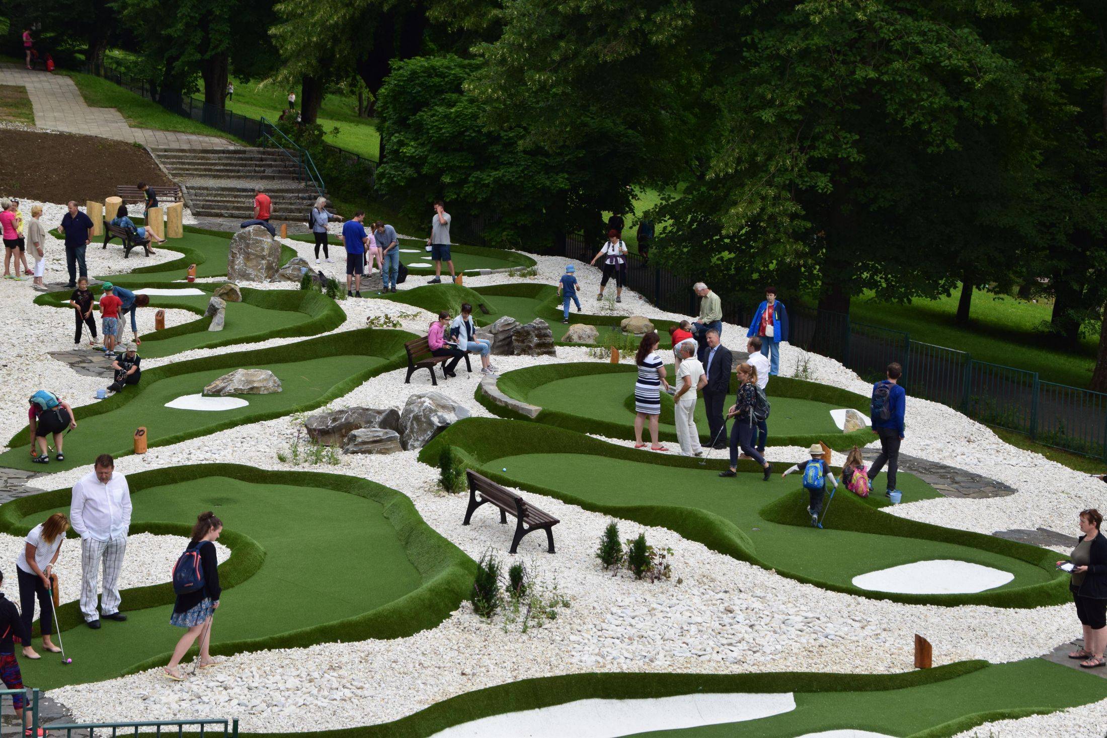 Bavíme se hrou – Adventure pro celou rodinuProjekt by l realizován od srpna 2021. Realizace zahrnovala vybudování 6 jamkového hřiště Adventure golfu, součástí jsou venkovní herní prvky a zázemí pro cyklisty. The project was implemented in August 2021. The implementation included the construction of a 6-hole Adventure golf course, which includes outdoor game elements and facilities for cyclists.