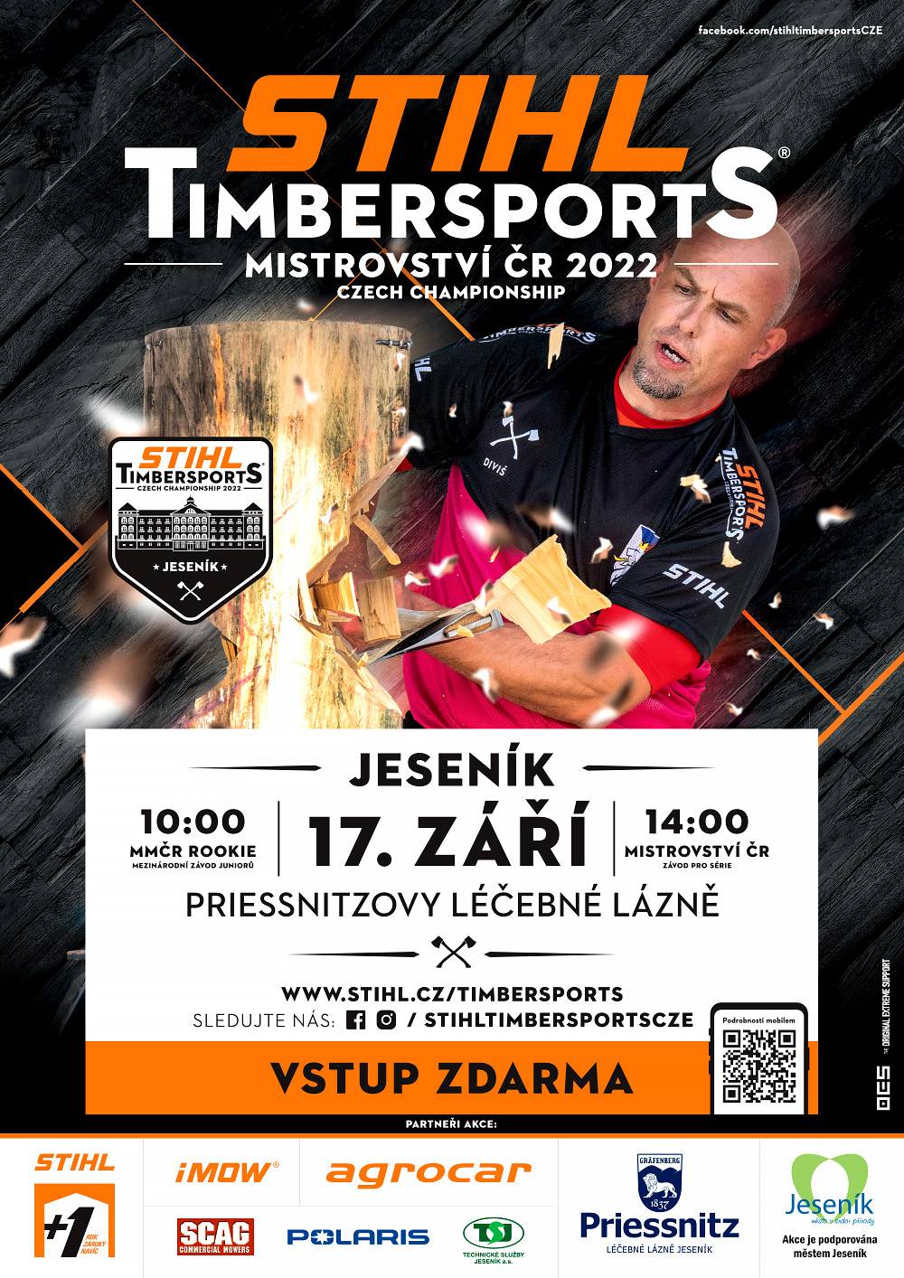 Mistrovství ČR v dřevařském sportu 17.9.2022 hřiště za Priessnitzem Jeseník,Srdečně Vás zveme na Mistrovství ČR v dřevařském sportu, které se koná dne 17.9.2022 na hřišti za PLL. sobota od 9 hodin – Juniorské mistrovství (mezinárodní 6 států) sobota od 14 hodin – hlavní závod - max. do 19 hodin JESENÍK PŘIVÍTÁ MČR a MMČR STIHL TIMBERSPORTS®V sobotu 17. září 2022 proběhne v Jeseníku Mistrovstí ČR a Mezinárodní mistrovství ČR juniorů ve STIHL TIMBERSPORTS®. Kromě kompletní české špičky Pro Series, se v dopoledních hodinách představí nejlepší juniorští reprezentanti nejen z České republiky, ale také z Německa, Rakouska či Itálie.Nádherný areál Priessnitzových léčebných lázní Jeseník přivítá prestižní soutěž dřevorubeckých sportů vůbec poprvé a to právě v roce oslav 200. výročí své existence. Organizátoři se vždy snaží najít atraktivní lokalitu pro tuto divácky zajímavou podívanou. Diváci se tak mohou těšit na fantastickou kulisu, kterou prostředí parku nabízí.Už v dopoledních hodinách bude možné vidět závodníky z evropské špičky juniorů na Mezinárodním MČR juniorů od 10:00 hodin v prostoru lesního parku poblíž lázeňského domu Priessnitz. Odpolední čas od 14:00 pak bude patřit závodníkům soutěže Pro Series, z nichž vzejde nový mistr České republiky STIHL TIMBERSPORTS®. Přestože dřevorubecké závody mají v Evropě kratší historii než v zámoří, můžeme v posledních letech nejen v Česku sledovat obrovský nárůst popularity tohoto sportu. Každoročně mohou noví zájemci o tento netradiční sport absolvovat kemp pro nováčky a pokud se rozhodnou v něm pokračovat a dosáhnou základní úrovně pro účast v jednotlivých kvalifikacích, v dalším ročníku se již mohou účastnit jednotlivých závodů. Z nich se na základě výsledků nominuje dvanáctka těch nejlepších, kteří bojují o titul Mistra ČR a zároveň o účast na Mistrovství světa. Tam je již konkurence skutečně obrovská a jen účast na této akci je pro sportovce nezapomenutelným zážitkem a zkušeností. Priessnitzovy léčebné lázně hostí tuto vrcholnou sportovní dřevorubeckou akci poprvé. „Diváci v Jeseníku již loni ukázali, že Timbersportu rozumí a věřím, že si tuto akci opět nenechají ujít a že závodníky jako vždy poženou k vynikajícím výsledkům a novým osobním rekordům,“ uvedl Jan Brabec, hlavní organizátor STIHL TIMBERSPORTS® v České republice. V rámci závodů STIHL TIMBERSPORTS® mají závodníci za úkol zvládnout šest disciplín a přesekat či přeřezat v co nejkratším čase a dle pravidel připravené dřevěné bloky. Ten, kdo nejlépe zvládne UNDERHAND CHOP, STOCK SAW, STANDING BLOCK CHOP, SINGLE BUCK, SPRINGBOARD a HOT SAW se stane novým králem českého STIHL TIMBERSPORTS®. Nenechejte si ujít jeho korunovaci a vyrazte v sobotu 17. září do Jeseníku. Disciplíny STIHL TIMBERSPORTS® SERIESUnderhand Chop STIHL Stock Saw Standing Block Chop | |