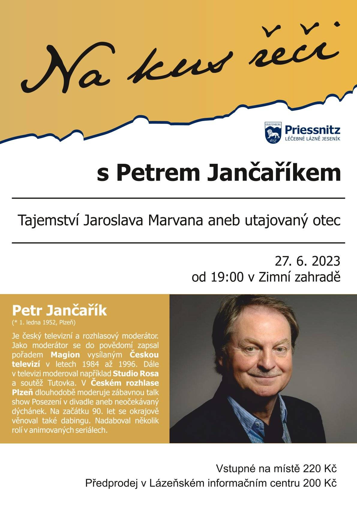 Na kus řeči s Petrem JančaříkemPřijďte si poslechnout talk show Na kus řeči, tentokrát s Petrem Jančaříkem! :)