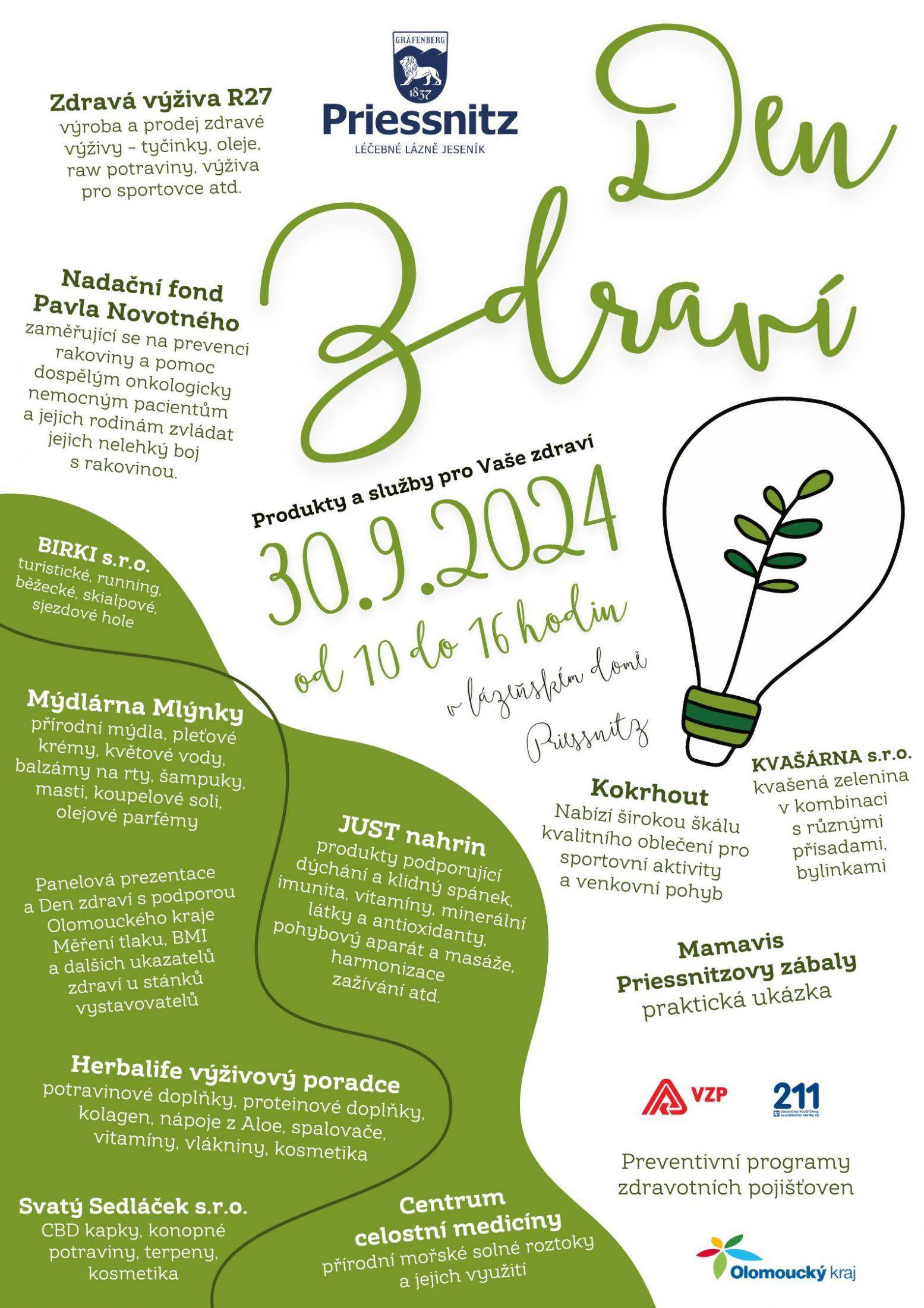 DEN ZDRAVÍ30.9.2024 Vás zveme na tradiční Den zdraví v Priessnitzových léčebných lázních, kde se představí firmy a produkty podporující zdraví a zdravý životní styl, čeká vás poradenství o benefitech a příspěvcích zdravotních pojišťoven a o možnostech prevence v oblasti zdraví. Proběhnou praktické instruktáže a prodej výrobků souvisejících se zdravím. Akci pořádáme s podporou Olomouckého kraje. | |