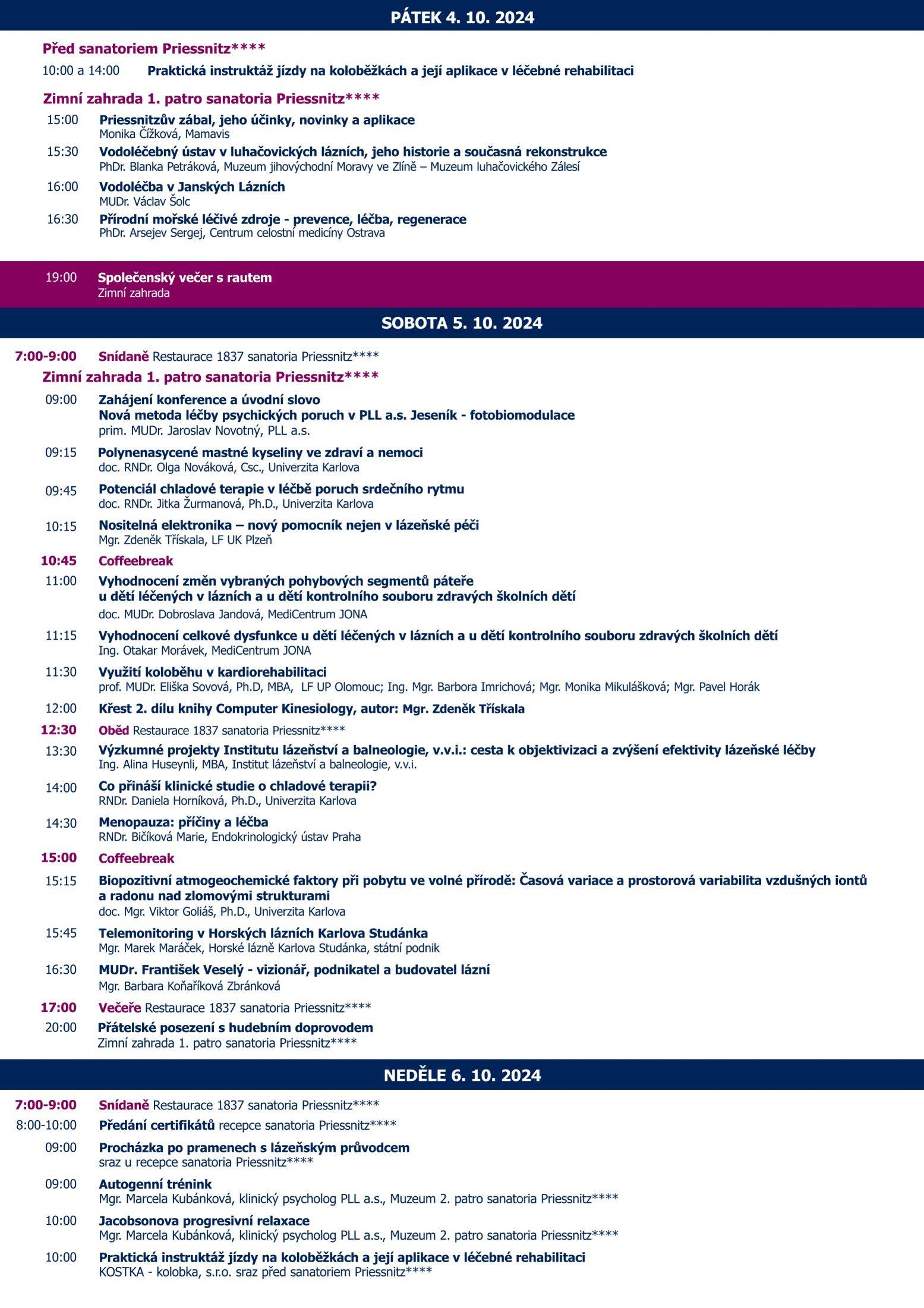 Konference Vincenze PriessnitzeOd pátku 4.10. do neděle 6.10. u nás proběhl již 17. ročník Konference Vincenze Priessnitze o významu lázeňské péče, tentokrát na téma „Význam lázeňské léčby jako součásti komplexní léčebné a preventivní péče“. Opět se zde setkali odborníci z různých druhů zdravotnictví s inspirativními a velmi obohacujícími přednáškami, také jsme pokřtili knihu Computer Kinesiology II., jejímž autorem je Mgr. Zdeněk Třískala. Děkujeme všem zúčastněným za jejich podíl na vydařené akci a příští rok opět na shledanou! | |