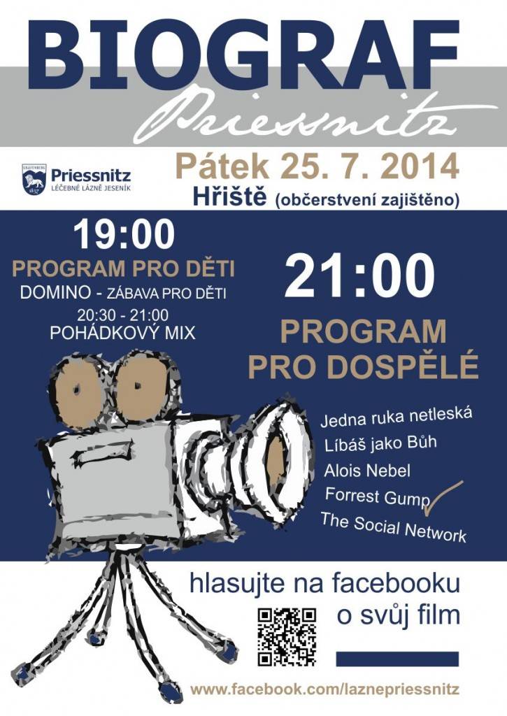 Biograf PriessnitzHlasujte do úterý 22. 7. 2014 o svůj oblíbený film. Dejte like k fotce a Váš hlas se započítá. Film s nejvíce "lajky" budeme promítat 25. 7. na lázeňském hřišti. Hlasujte zde: https://www.facebook.com/media/set/?set=a.750172325044456.1073741911.128178403910521&type=1 | |
