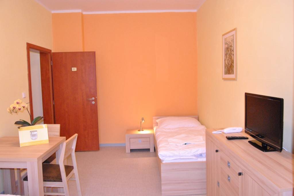 ![]() Jubilejní Vila***Jubilejní vila, typická svou nárožní věží, byla vystavěna na konci 19. století, kdy Gräfenberk zažíval opravdový stavební boom. V roce 2013 se po nákladné rekonstrukci stala se sousedním domem Mír centrem rodinné lázeňské turistiky. Vila se nachází v tichém prostředí v těsném sousedství Ripperovy promenády a sanatoria Priessnitz. Před jejím průčelím vám den provoní bylinkové inhalatorium připomínající ornamentální partery barokních zahrad.Vila nabízí dvanáct apartmánů s kapacitou 57 míst. Dva pokoje jsou speciálně upraveny pro klienty s tělesným postižením. Pokoje jsou vybaveny kuchyňkou s ledničkou, mikrovlnou troubou a varnou konvicí. Samozřejmostí je sprcha, WC, TV-SAT, telefon a Wi-Fi. Vila také disponuje jídelnou a bezbariérovým koridorem do lázeňského domu Mír. Výběrovou stravu pro samoplátce zajištujeme na Restauraci 1837 LD Priessnitz. Informace ke stravování ZDE. Služby