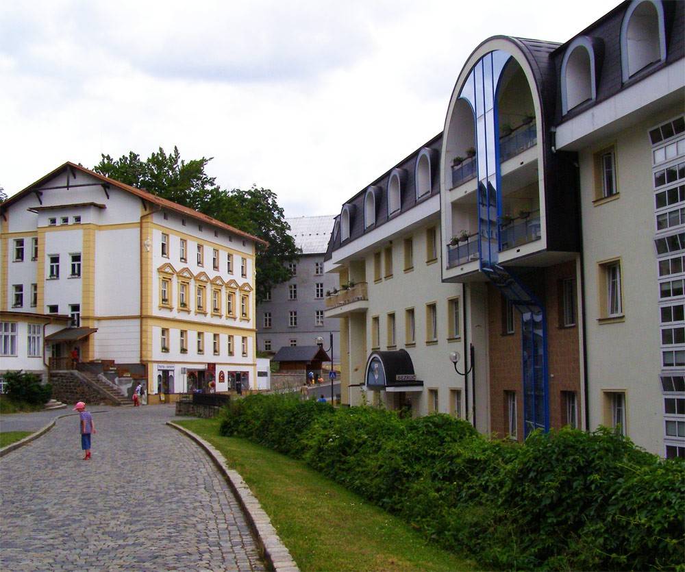 ![]() Bílý Kříž**Dlouholetý host lázní velkovévoda Friedrich Franz II. von Mecklenburg-Schwerin založil nadaci pro stavbu léčebného vojenského ústavu. Stavba přirozeně po štědrém donátorovi dostala jméno Mecklenburský dům. Později budovu přestavěla rakouská společnost Bílý kříž. Dnešní Bílý Kříž je vybaven dvou až třílůžkovými pokojí. Každý pokoj je vybaven televizí a chladničkou nebo minibarem. Koupelna a WC jsou na poschodí. Je zde k dispozici herna. Stravování je zajištěno v jídelně lázeňského domu Bezruč nebo Priessnitz. Na lázeňské procedury, rehabilitační bazén a saunu dochází hosté do okolních balneo zařízení. Informace ke stravování ZDE. Služby