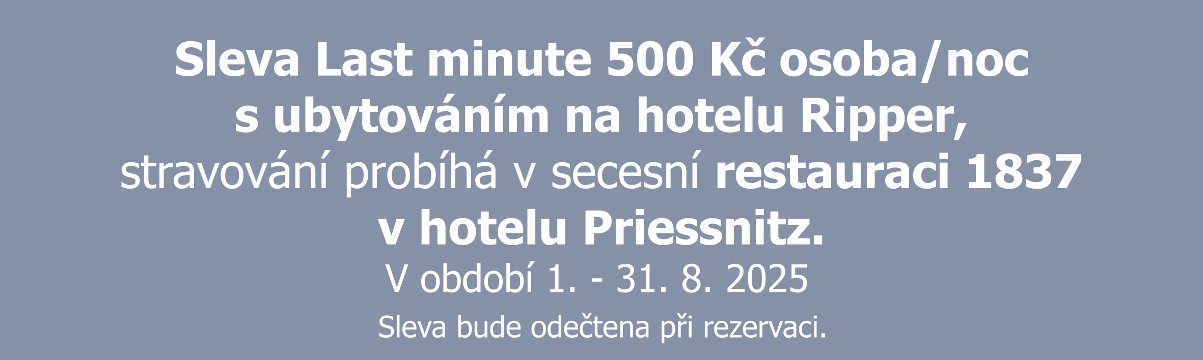 V případě obsazení pokoje pouze jednou osobou (s výjimkou jednolůžkového pokoje), uhradí klient 100% z ceny druhého lůžka. Poplatek z pobytu na rok 2025 je stanoven platnou vyhláškou Města Jeseník na 40 Kč/osoba/den. Od poplatku jsou osvobozeny osoby mladší 18 let, osoby nevidomé, držitelé průkazu ZTP/P a jejich průvodci. V ceníku nejsou zahrnuty slevy. Vysvětlivky: Standard room 1/1 - jednolůžkový pokoj se sociálním zařízením; Standard room 1/2 - dvoulůžkový pokoj se sociálním zařízením; Superior room - komfortní dvoulůžkový pokoj se sociálním zařízením; Standard suite - ubytování ve vzájemně propojených místnostech se 2 lůžky (ložnice) a sedací soupravou (obývací pokoj); Superior suite - komfortní ubytování ve vzájemně propojených místnostech se 2 lůžky (ložnice) a sedací soupravou (obývací pokoj), Standard studio - dvoulůžkový pokoj se sociálním zařízením s kuchyňkou
