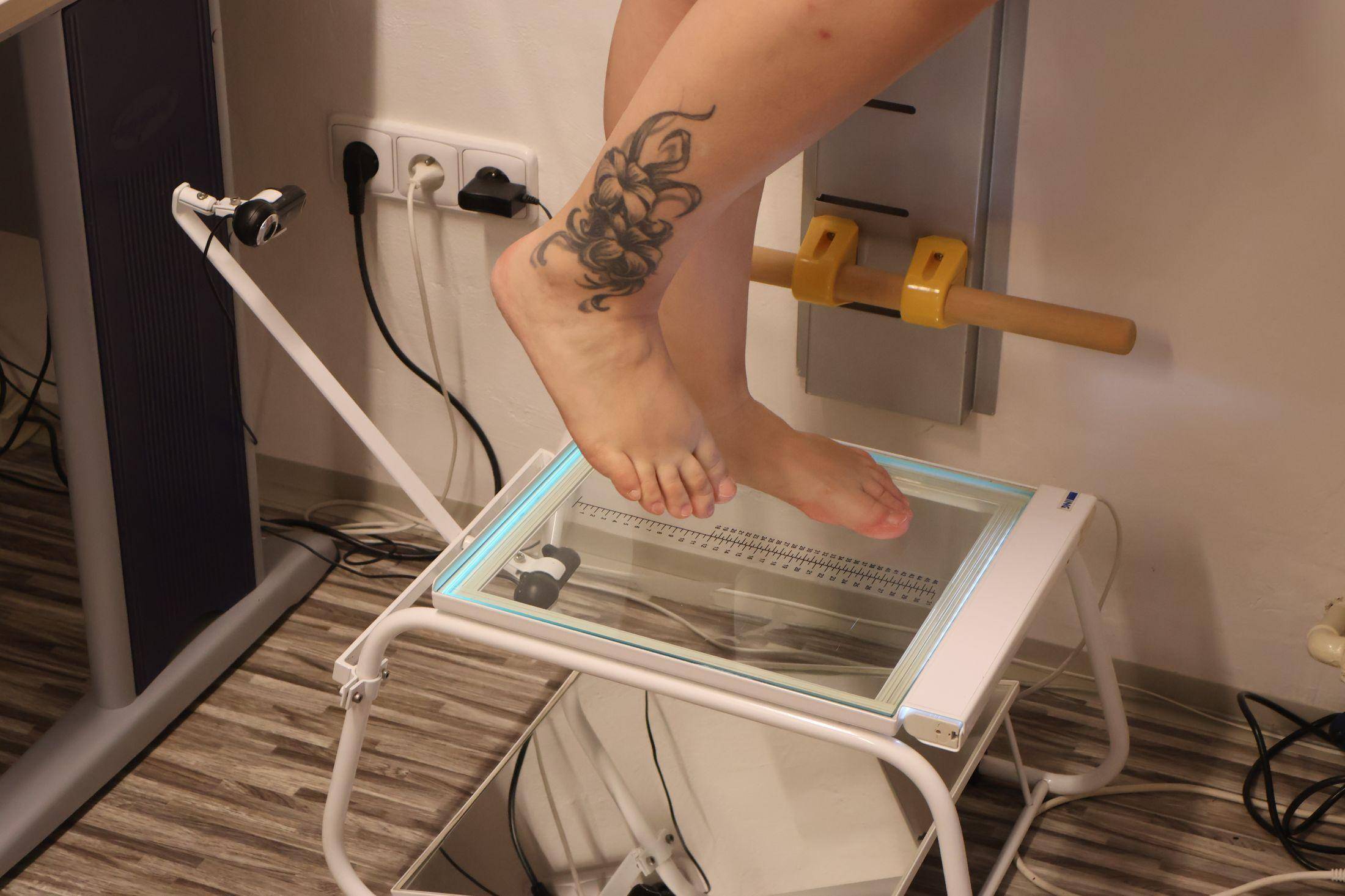 Pomocí speciálních přístrojů se vyšetřují chodidla (nožní klenba, zatížení či přetížení jednotlivých částí chodidel) a také celková statika dolních končetin. Na základě výsledků se navrhuje další postup: doporučuje se cvičení, vložky do bot nebo kombinace obou možností. Individuální termoplastické vložky do bot je možné posléze zakoupit přímo u fyzioterapeuta – upravují se dle nálezu z vyšetření, aby mohly odlehčit přetíženým částem z chodidel. S sebou si vezměte pevnou obuv.