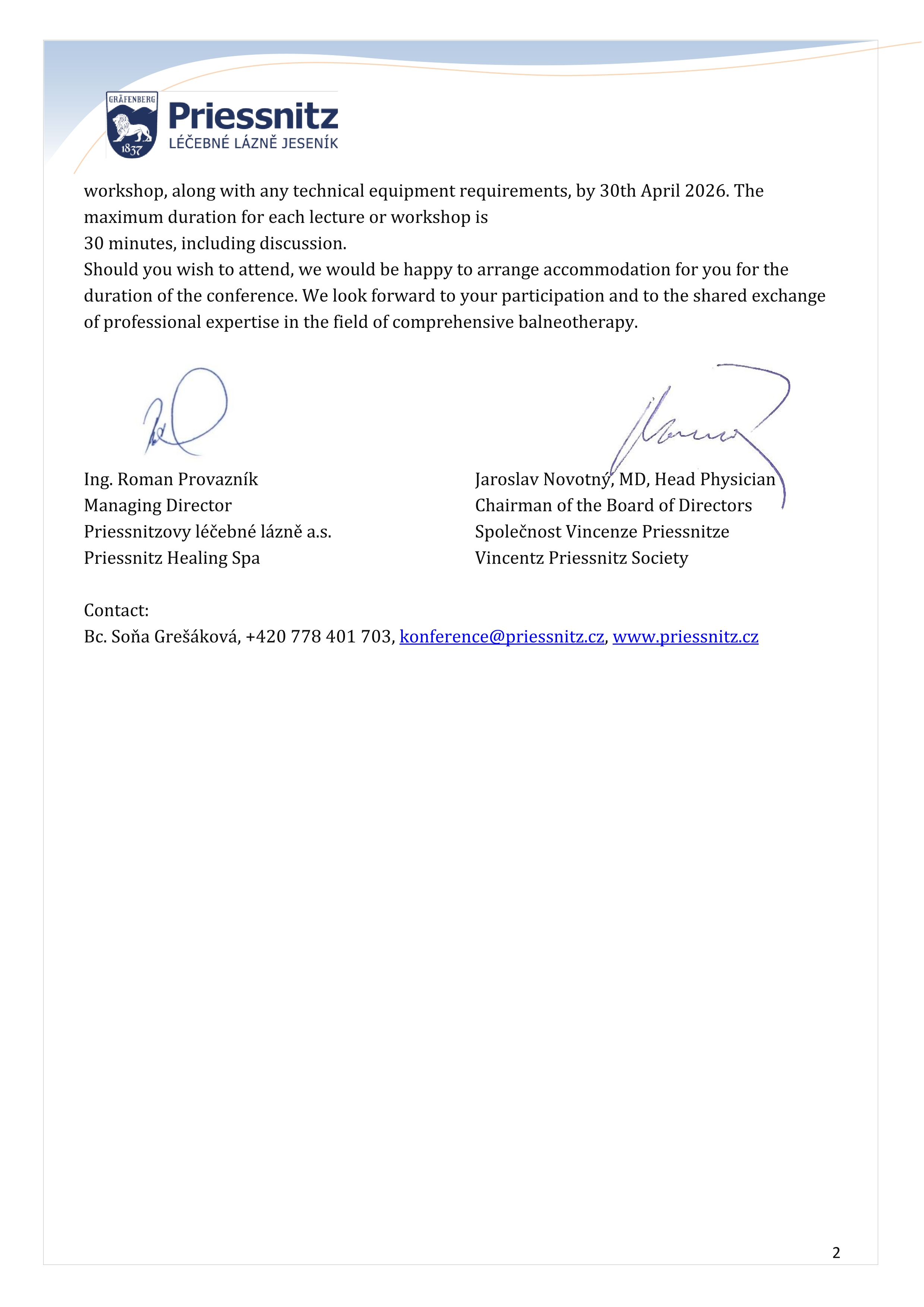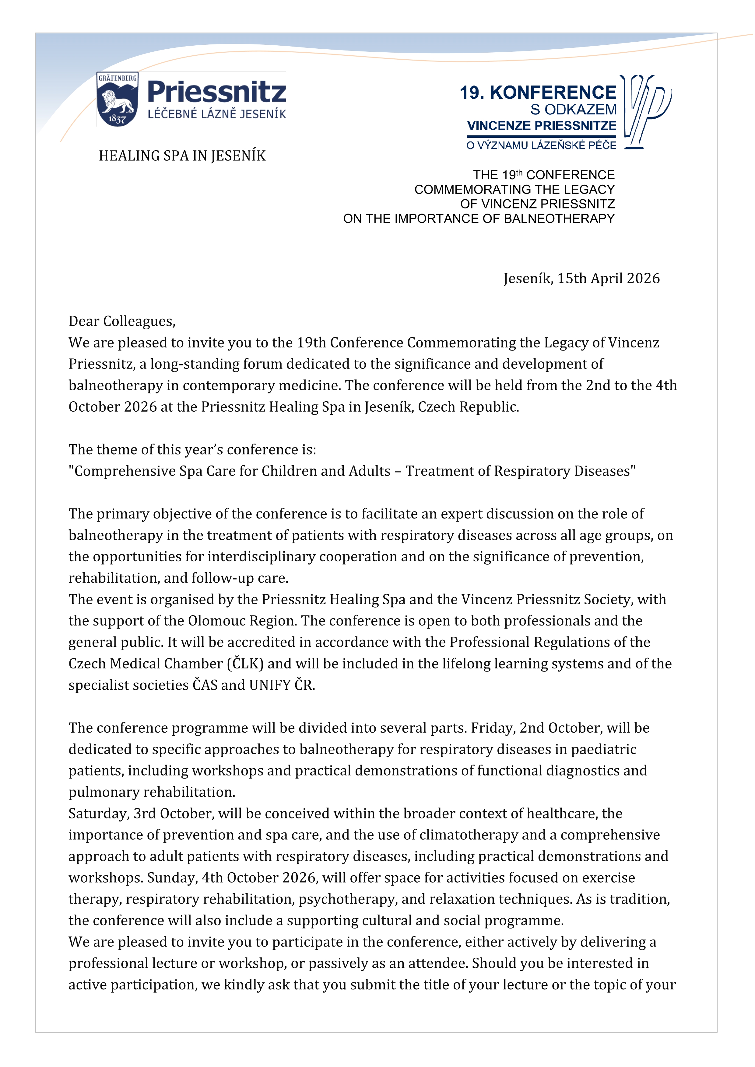 Invitation to the Vincenz Priessnitz Conference in Jeseník 2026 CZECH REPUBLIC