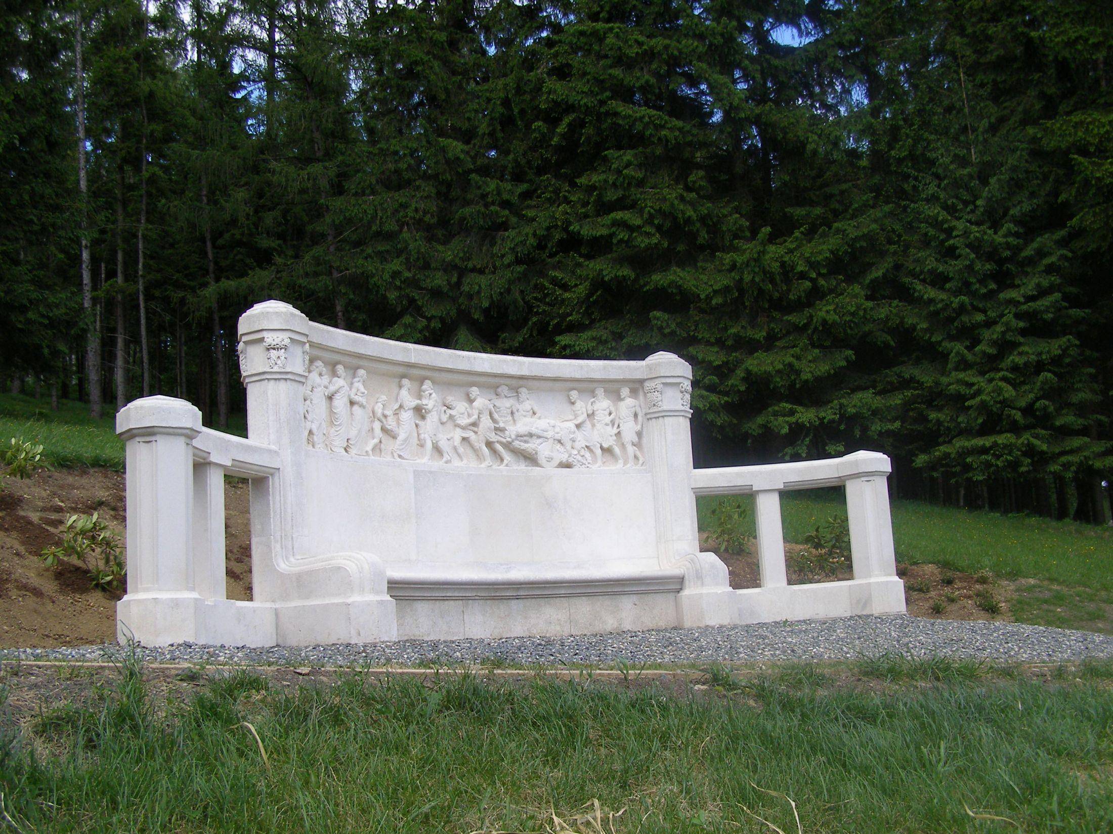 Marble bench with a relief entitled "RETURNING GERMAN HUNTERS" (E)
