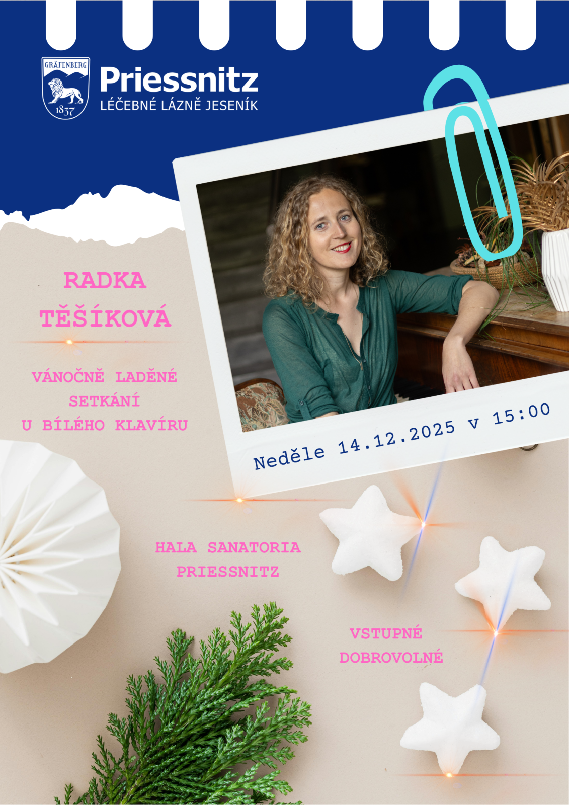 VÁNOČNĚ LADĚNÉ SETKÁNÍ U BÍLÉHO KLAVÍRU (Koncerty) 14.12.2025 od 15:00 do 16:00 hod. | |
